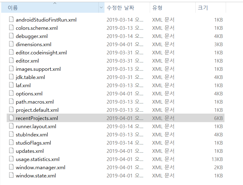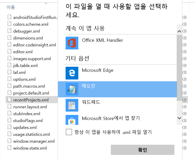 recentProjects.xml 파일을 메모장으로 열어줍니다.