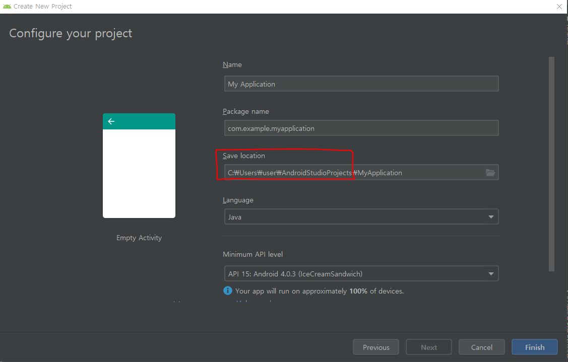 빨간색 박스친 Save location 혹은 Project location을 일일히 바꾸어주어야 하는 경우가 있습니다